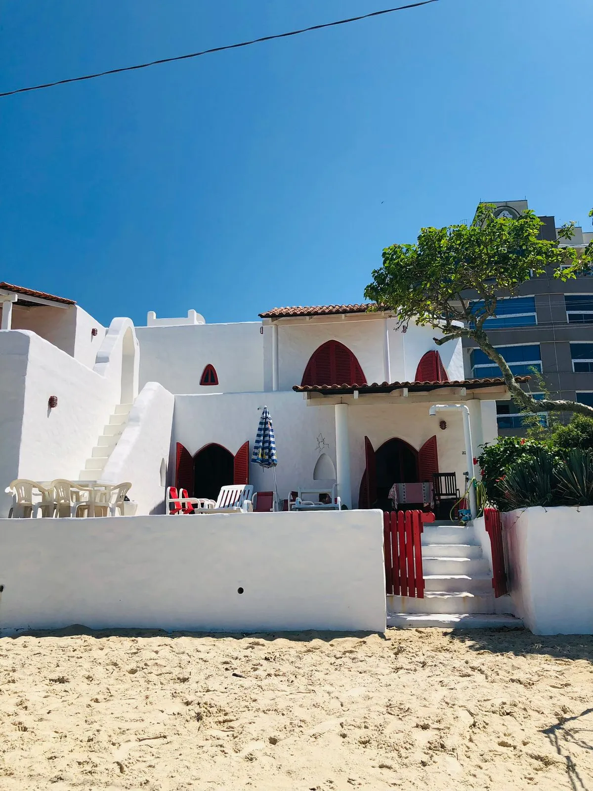 Casa beira mar em morrinhos, de 03 dormitórios, sendo 02 suítes, 04 ar-condicionados, 03 camas de casal, sofá cama, 03 TV smart, 04 banheiros, sala, cozinha completa com fogão, geladeiras duplex, mesa, chuveiro externo, churrasqueira, máquina de lavar e tanquinho. COM WI-FI.