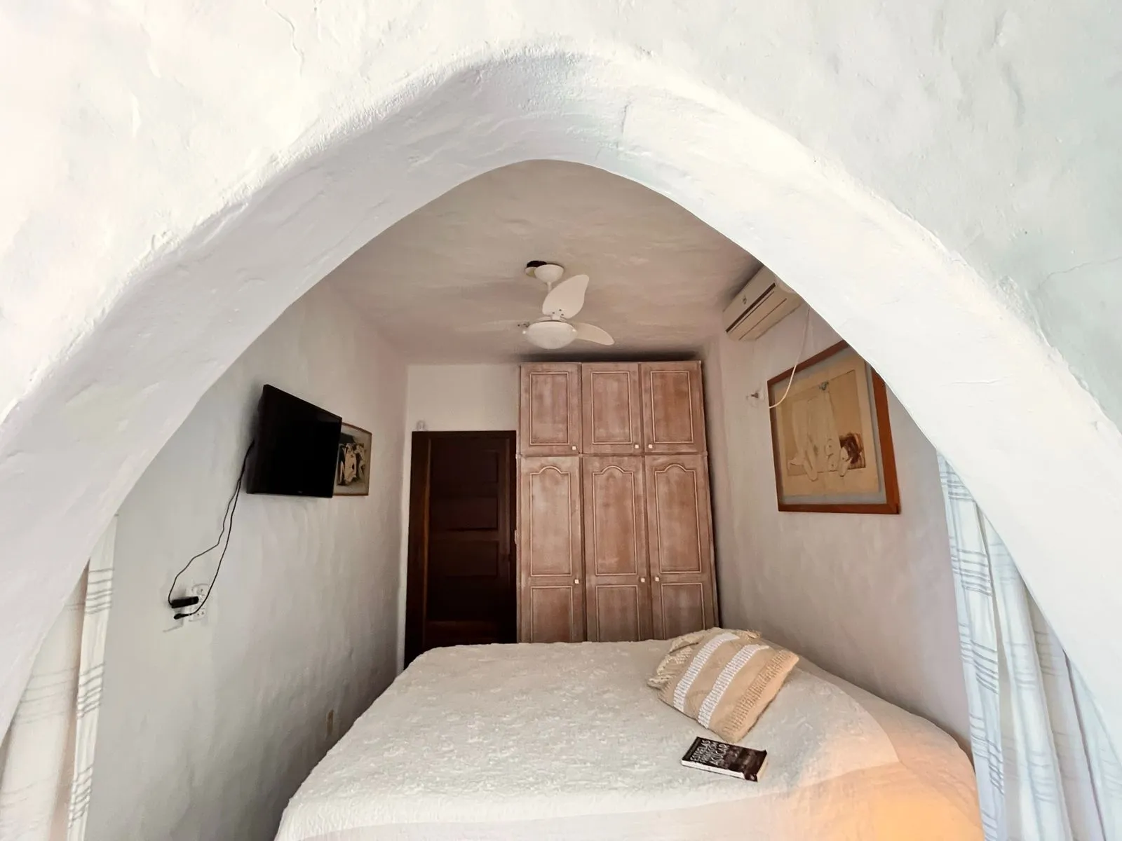 Suíte 01: ar-condicionado, uma cama de casal + WC.